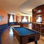 Koupelna má bidet, samostatnou toaletu a vanu, zatímco pokoj má osobní sejf, psací stůl a satelitní TV.